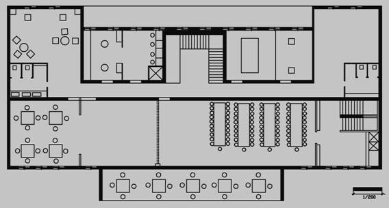 設計想法及說明 整個療養院以方塊體並列的方式、平板元素的使用、或是正面的構圖,都符合其先前所提出的sopraporta 浮雕 想法 手法與表現 1立面上幾個長方體的交疊及中央十字通道,反映出他在1902年之後走向較平坦的古典表現模式,及根據Wagner 1898年以後,傾向塊體和表面處理。 2.由外觀可以看到一樓帶狀的開窗口,它的內部空間是大廳、梯間、餐廳等,都用了某些簡單比例切割,讓室內空間可以和室外一樣有很強的清晰度和簡單性。 ﹙在平面上大廳是用2︰3的比例,樓梯間是1︰1,餐廳近似1︰3,樓梯旁的小型社交聽也近似1︰1﹚ 3.在二樓以上的開窗比例,嘗試把量體在細分成數個正方形。 4.建築物上部僅有的一排與建築物無關的雕飾及建築平面周圍配置庭園的做法,表現了古典且簡樸,更接近Wagner 的風格。 |