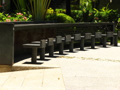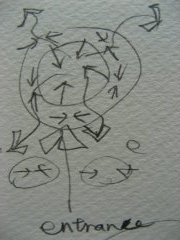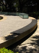 →廣場c. 四周所有椅子皆焦距在舞台方向 往外放射。而附近空間的圍塑方式都是約45公分高,使得可以作為座椅往舞台中央觀看。
