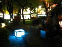 -光台- a. 窄→通常成為坐椅,如果偏正方形的椅子,很多人都會連腳都坐上去。 b. 寬→使用性很高,會站上去奔跑跳舞,也有一群人坐在正中間聊天,或是單純坐在側邊。