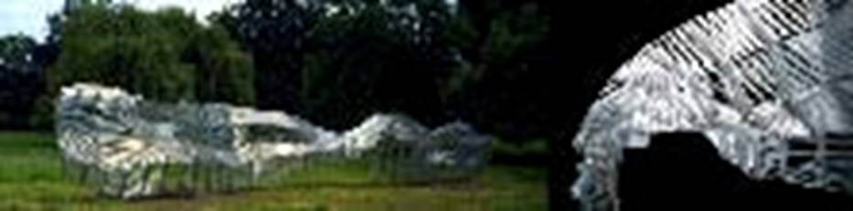 completed in 2003, features an 8-by-6-foot aluminum screen whose form is based