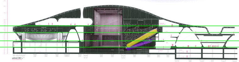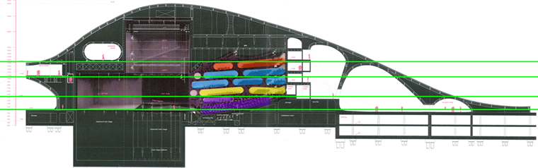 圖17:衛武營藝術文化中心大劇院空間及各層座位示意圖(左到右:0m-4m-10m-15m)