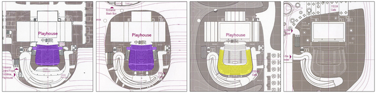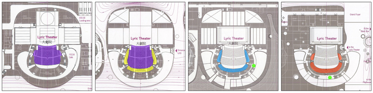 圖21:衛武營藝術文化中心中劇院空間及各層座位示意圖(左到右:0m-4m-10m-15m)