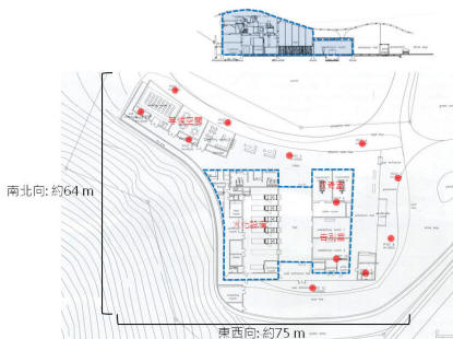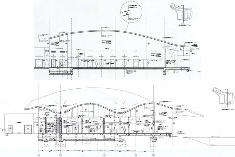 [短向剖面圖-火葬穿廊(上圖)與告別式、收骨空間(下圖)] 圖片資料來源:(2009). Toyo Ito, 2005-2009 : espacio líquido = liquid space ――――――――――――――――――――――――――――――――――――― |