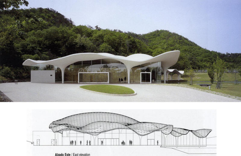 [東向立面圖(主入口大廳)] 圖片資料來源:(2009). Toyo Ito, 2005-2009 : espacio líquido = liquid space ―――――――――――――――――――――――――――――――――――――