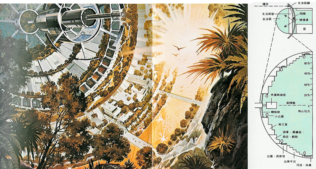 美國太空人,尼爾•阿姆斯壯步下阿波羅11號成功在月表上漫步並發表其不朽名言,其後幾年科學家認真思索月球生活的可能性並發展出想像的設計圖