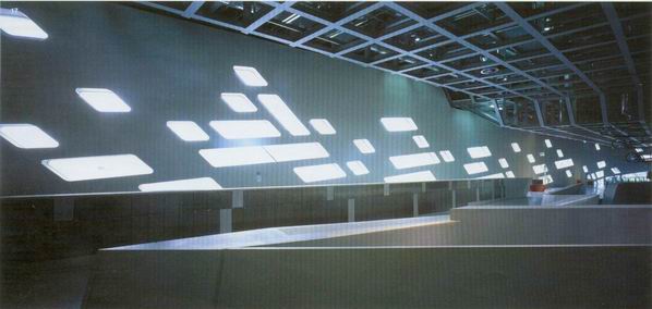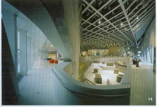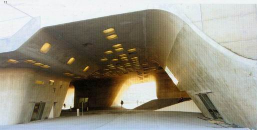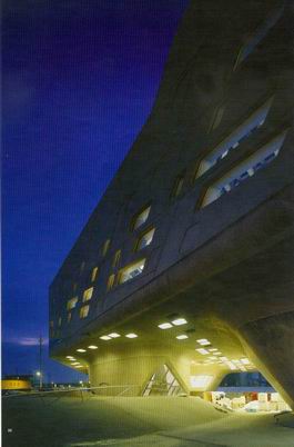 建築師將目然科學中心的龐大量體抬起,而在其下方進一步創造出一處斬新與獨特的都市空間札哈•哈蒂地自己描述它是一種具有地理變化的景觀慨念