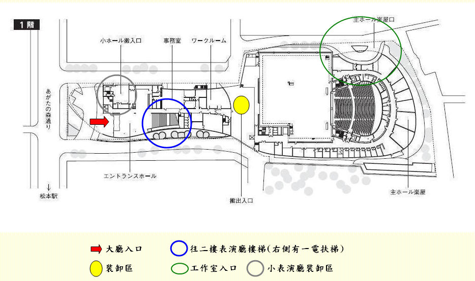 此為多功能的表演廳,有較多的工作出入口.