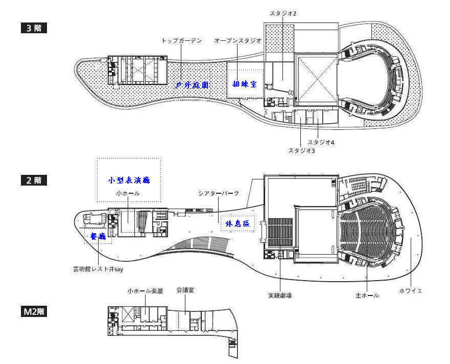 基地北側較狹窄,一樓規劃為行政空間,二及三樓則為小表演廳.