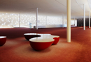 休息區地毯用色強烈 位於大廳上方的餐廳