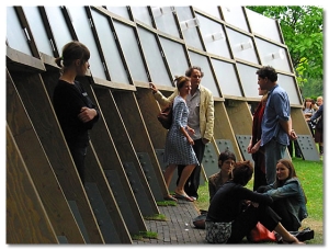 Siza對於臨時性地景的詮釋,以如此抽象、簡潔、低調的方式,塑造出人與自然間的第三層皮膚,卻又關注到環保、再利用的議題,因此儘可能以簡約有效率的方式進行建造組裝,使這個作品從純建築發揮中更向上進一層次。 (by B9313002)