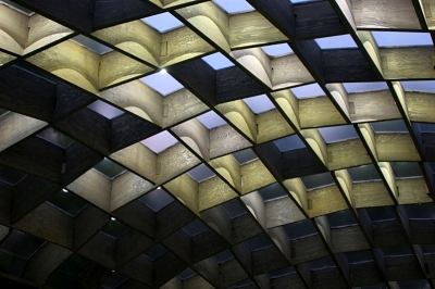 而Siza對於室內空間的呈現在此有別於以往對建築的想法,以一個完整無分割的室內空間,企圖回應整片格柵形成的「膜」,人在室內的活動行為能夠互相關照,與原本在草坪上的模式較無差異。