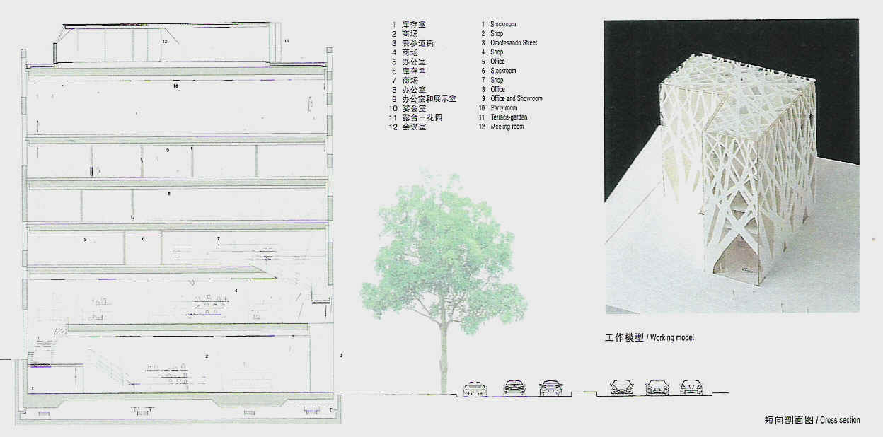 位於東京都時上的表參道地區,是為義大利的奢侈鞋包品牌TOD'S量身訂做的建築。