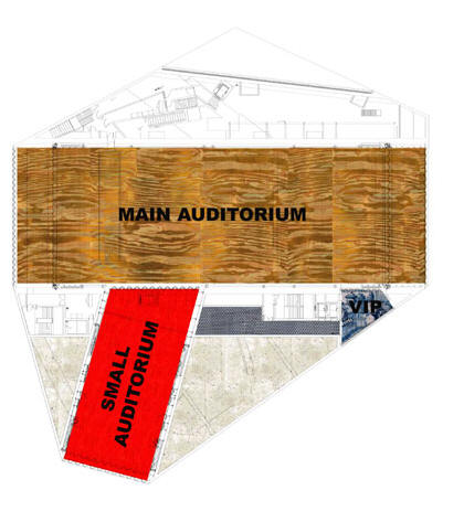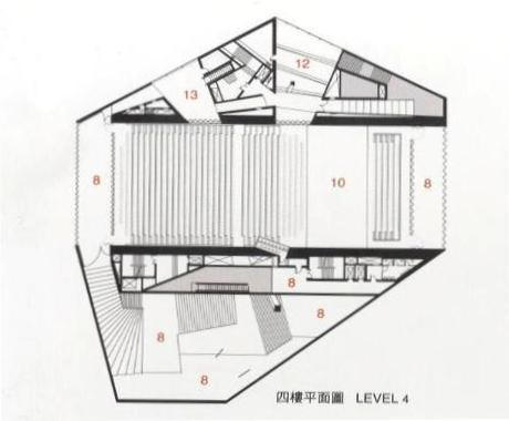 平面部份,地下室與地面樓層主要以排練室、更衣室為主,一樓平面以獨奏廳、辦公室為主,三、四樓以大行聽眾席為主,五、六樓式小型聽眾席,八樓以餐廳、露台為主要空間。