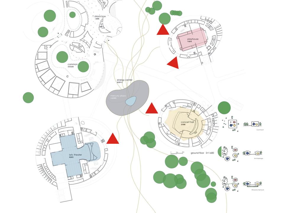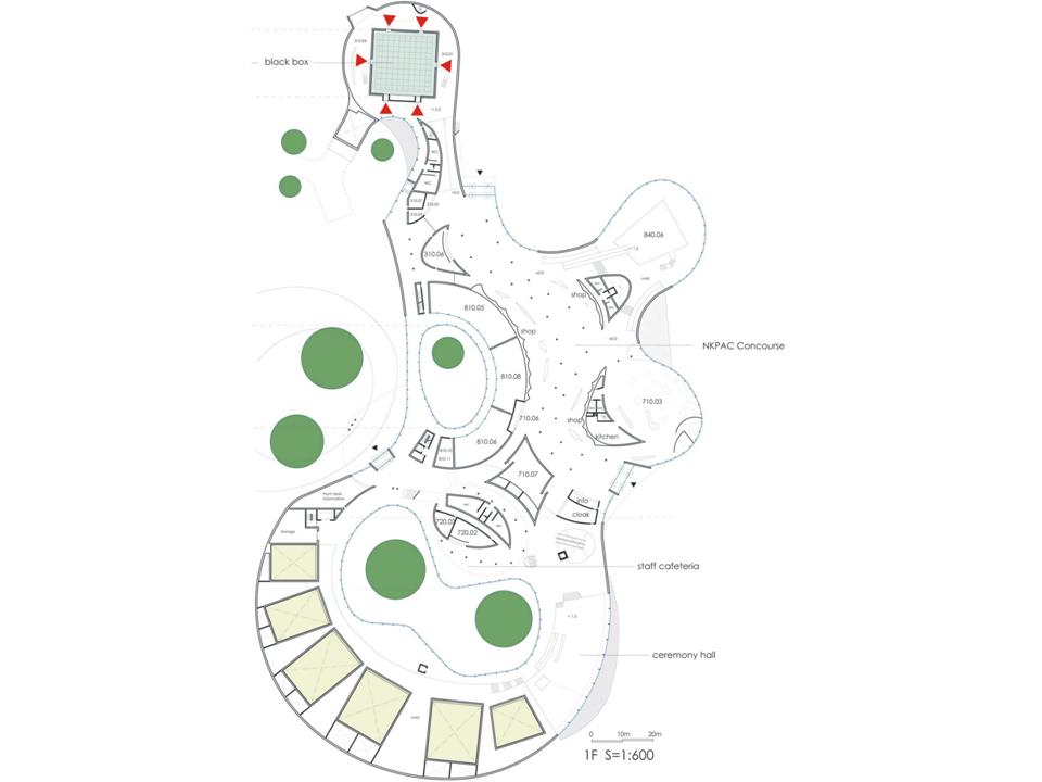 (實驗劇場、中劇院、演奏廳、歌劇院)1F銀河公園廣場或地下通道→各劇場1F大廳