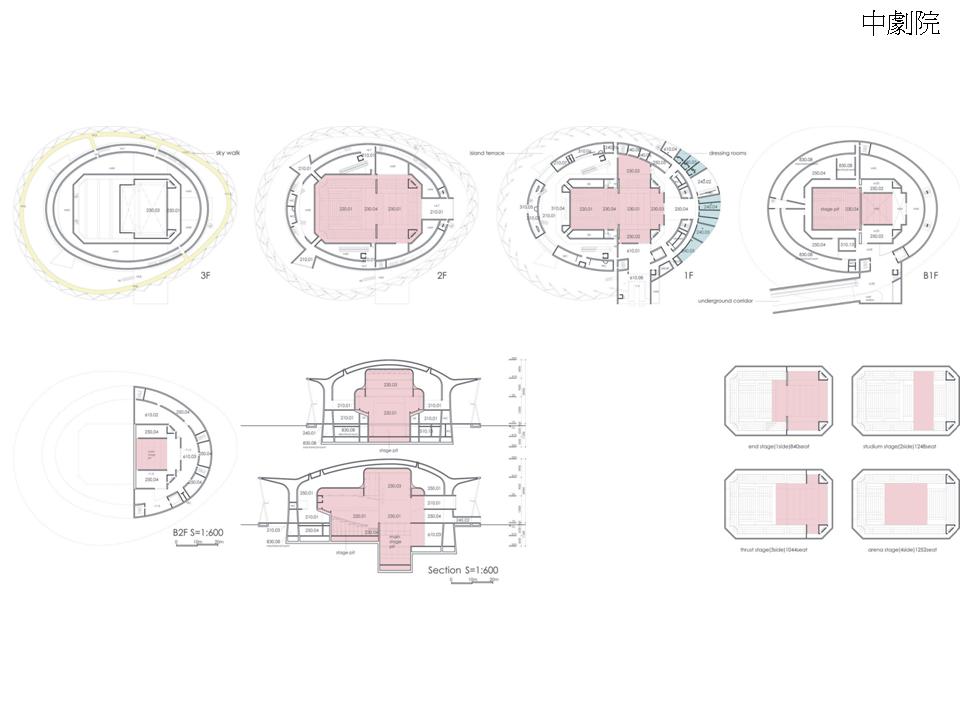 舞台:十字型 觀眾席:扇形 深地下設備層