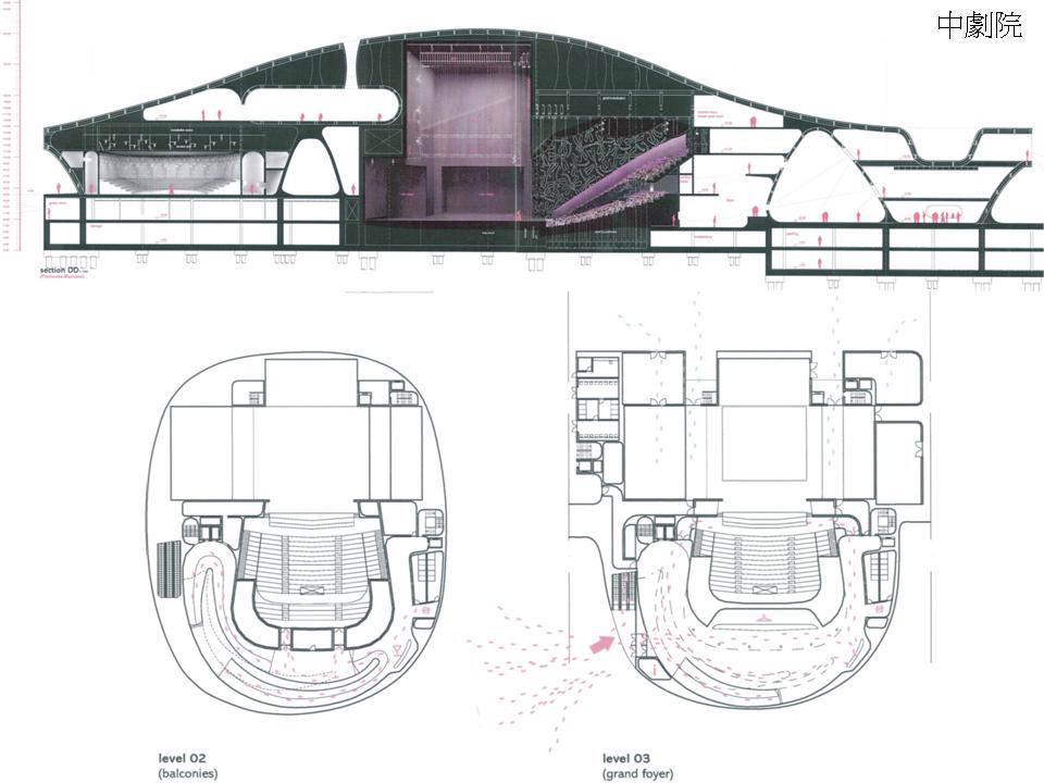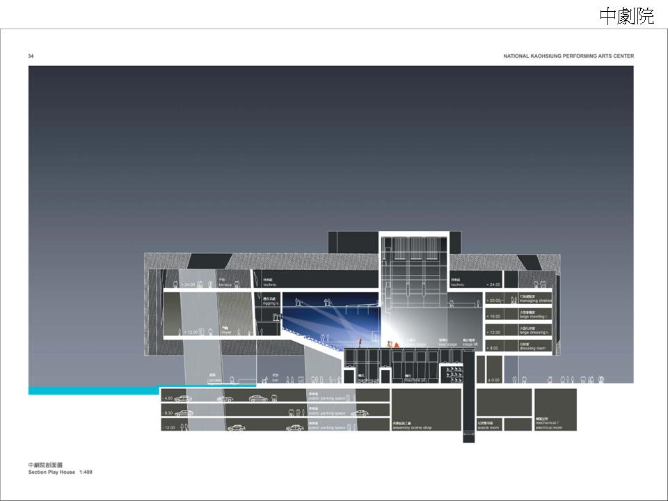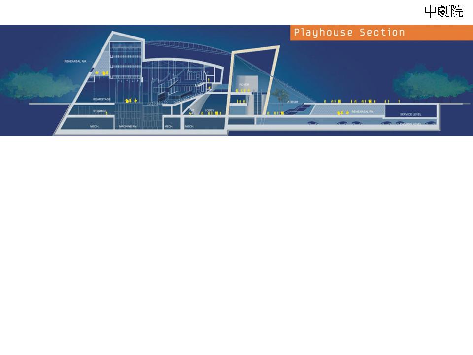 舞台:十字型 觀眾席:馬蹄形 深地下設備層