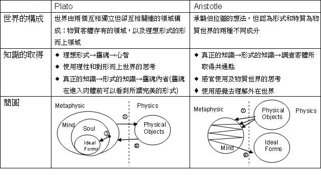 柏拉圖與亞里士多德理論比較表: