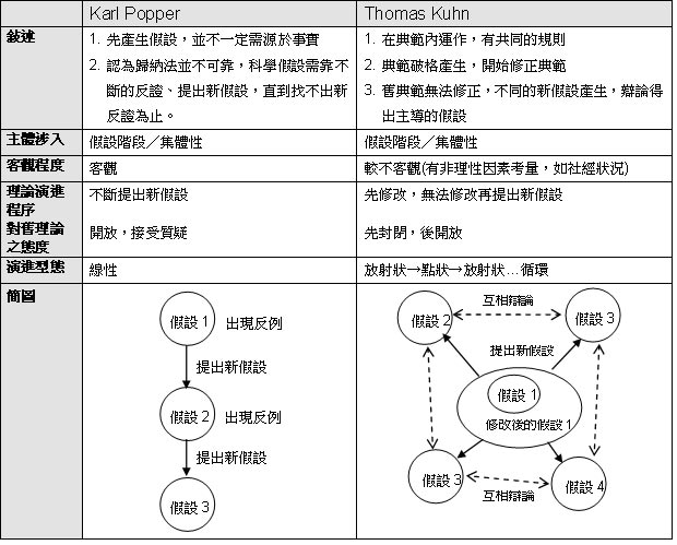 (Thomas Kuhn) 對於科學理論的主張的異同: