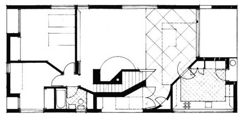 “1961年,我母親見我的建築師事務所生意寥落,心裏非常著急。於是請我為她設計一幢新居,這就是‘母親之家’。這幢房子除了餐廳、起居合一的廳和廚房以外,有一間母親使用的雙人臥室、一間我使用的單人臥室。在二樓另有一間我用的工作室。此外,各處都配備了極為簡約的衛生間。整個建築規模不大、結構也非常簡單,但是功能齊全,設計考慮比較全面,能夠以一種充滿溫情的風格滿足家庭的所有實際活動的需要。”——Robert Venturi