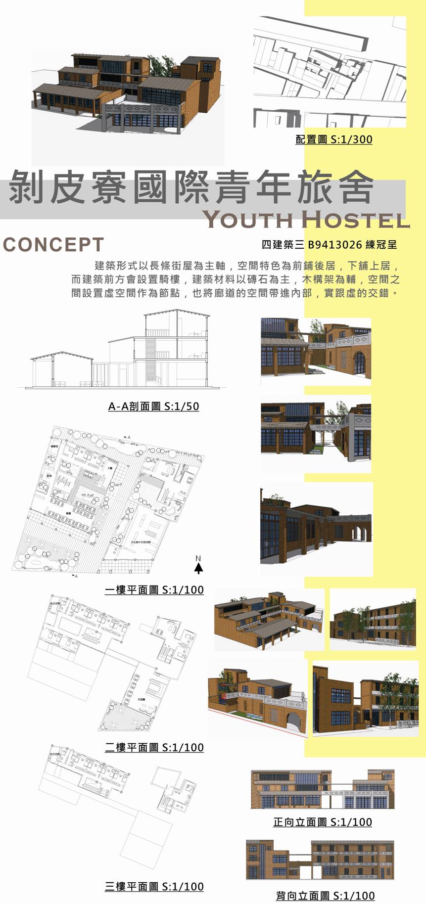 CONCEPT --- 建築形式以長條街屋為主軸 空間特色為前舖後居或下舖上居 將廊道帶入室內 內部空間實虛交錯