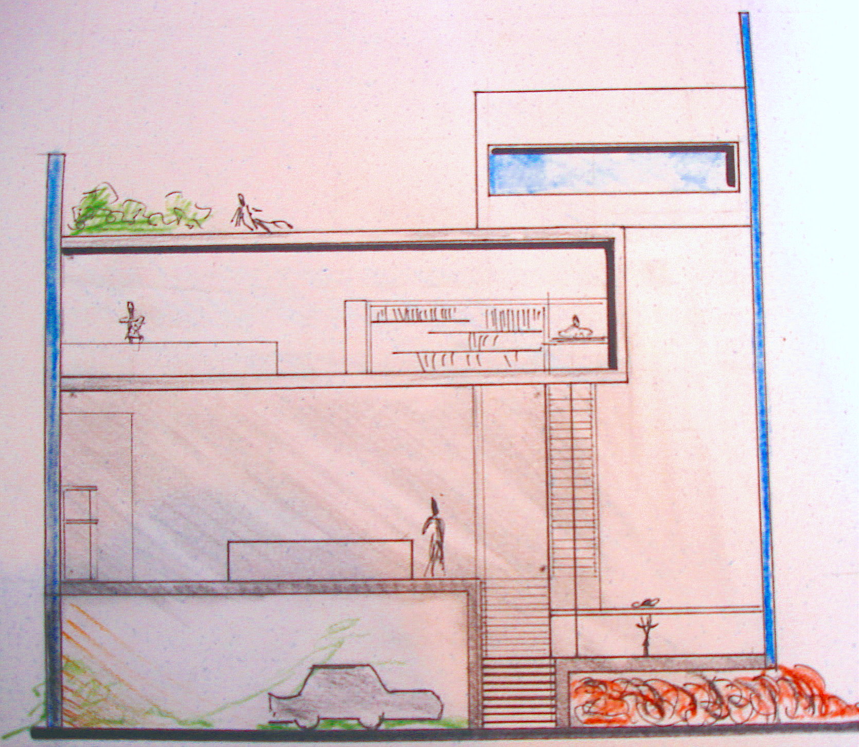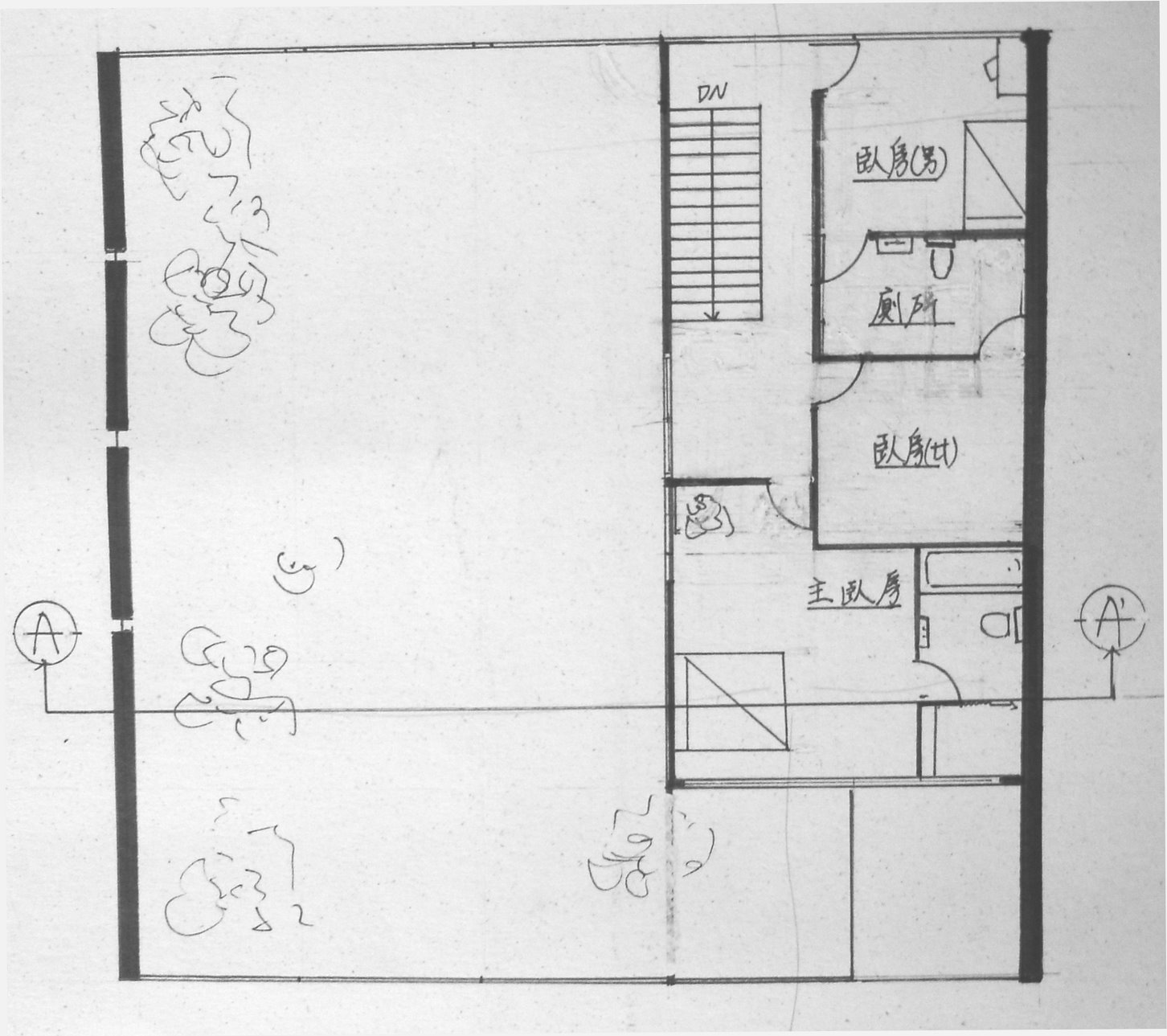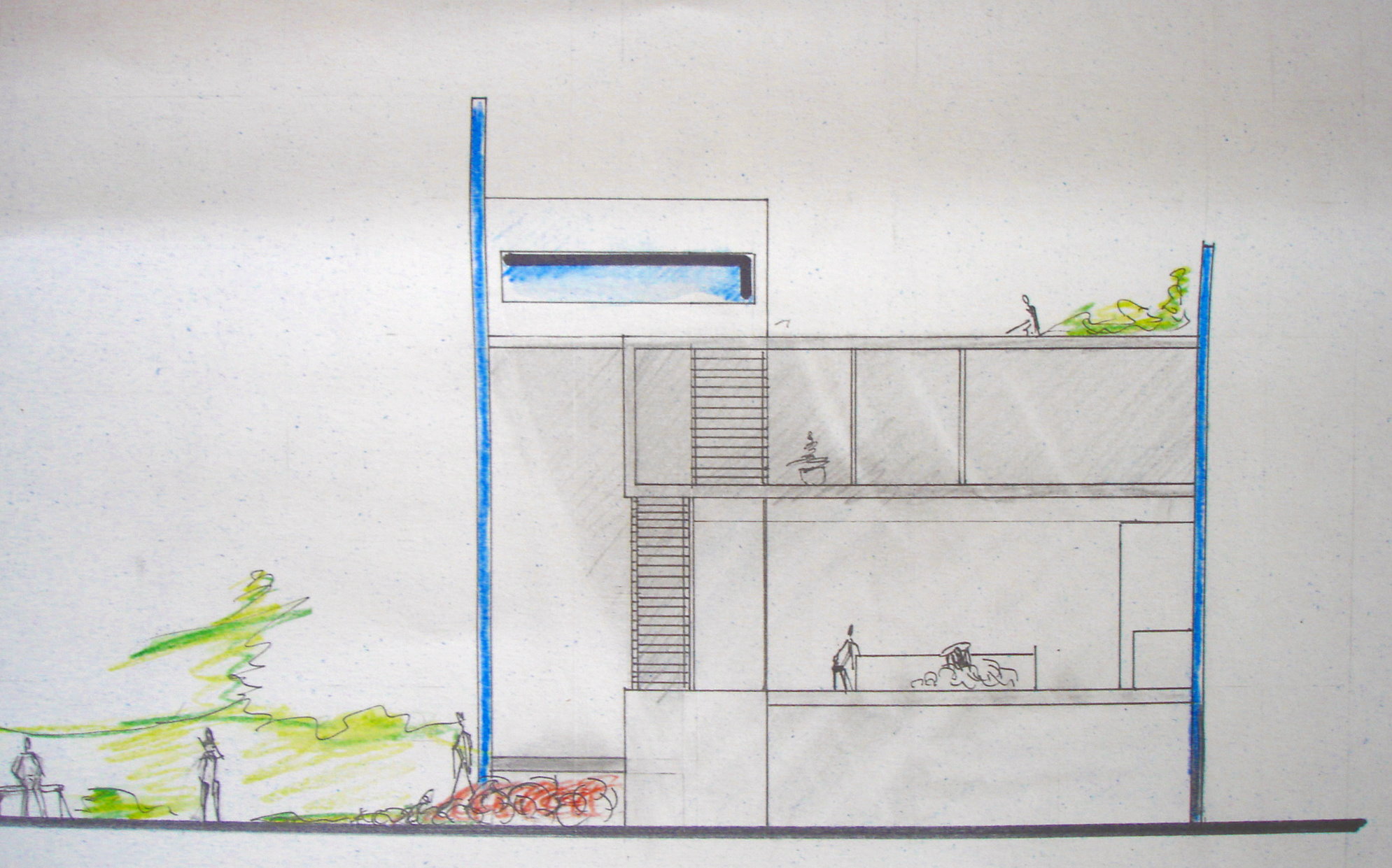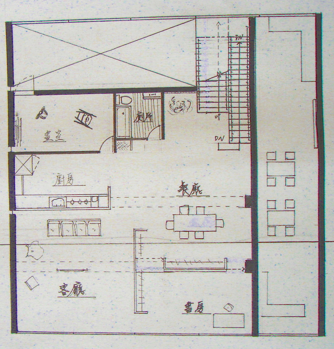 家庭結構 夫妻 + 小孩 12 / 14 / 16歲 二女一男 空間需求 1.住宅 200 米平方 以下 2.陶藝及油畫工作室 100 ~ 150 米平方 3.作品展示 100 ~ 150米平方 4.書籍及藝品販售 50 ~100 米平方,含 15 ~ 20 人咖啡廳 全部空間不得超過 600 米平方 設計說明 穿透30公分的牆,隱約看見錯開的模板,挑高的展示空間掛著自己的創作,滿足以自己的作品為傲的藝術家夫妻 吊掛式的樓梯穿連空間,希望以半開方式的空間構築此住宅 |