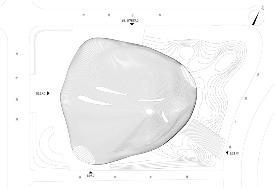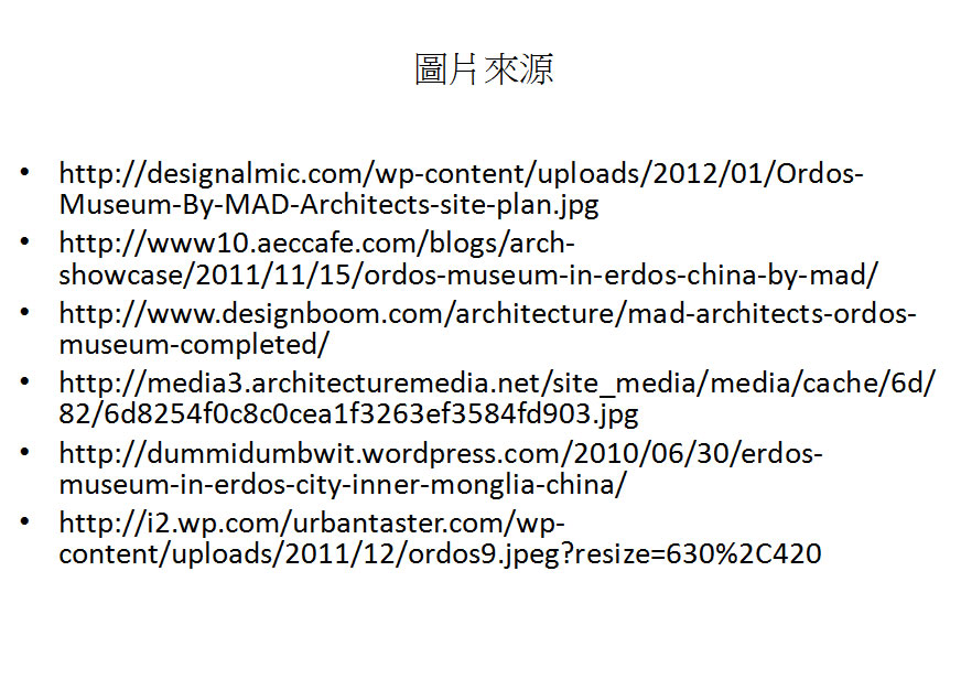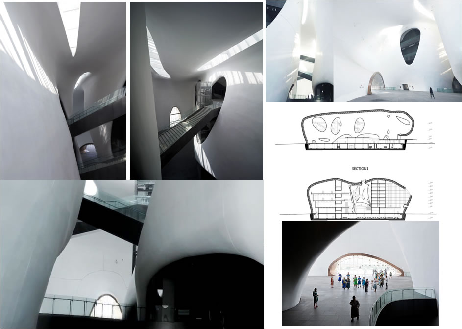<基本資訊> Architect: MAD Architects Location: Ordos, Inner Mongolia, China Site Area: 27,760 sqm Building Area: 41, 227 sqm Building Height: 40 m Completion: 2011 - 基地條件: 鄂爾多斯新興城市(距原城市數十公里處),戈壁沙漠內部 - 設計手法: 以自然、不規則的核狀(nucleus)形態打破整體幾何的都市規劃