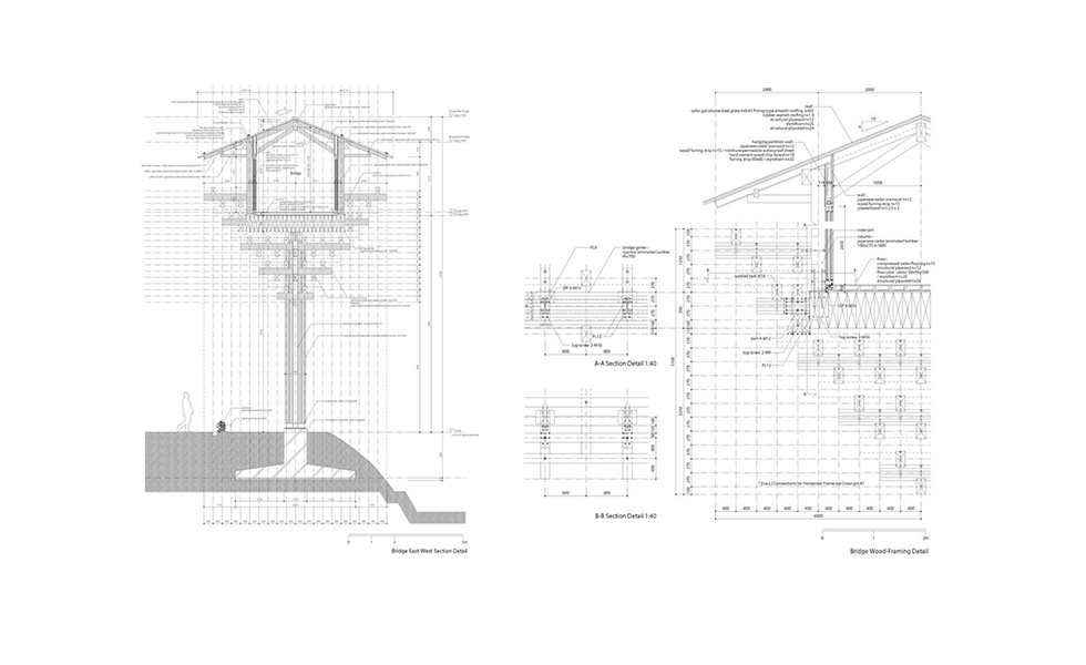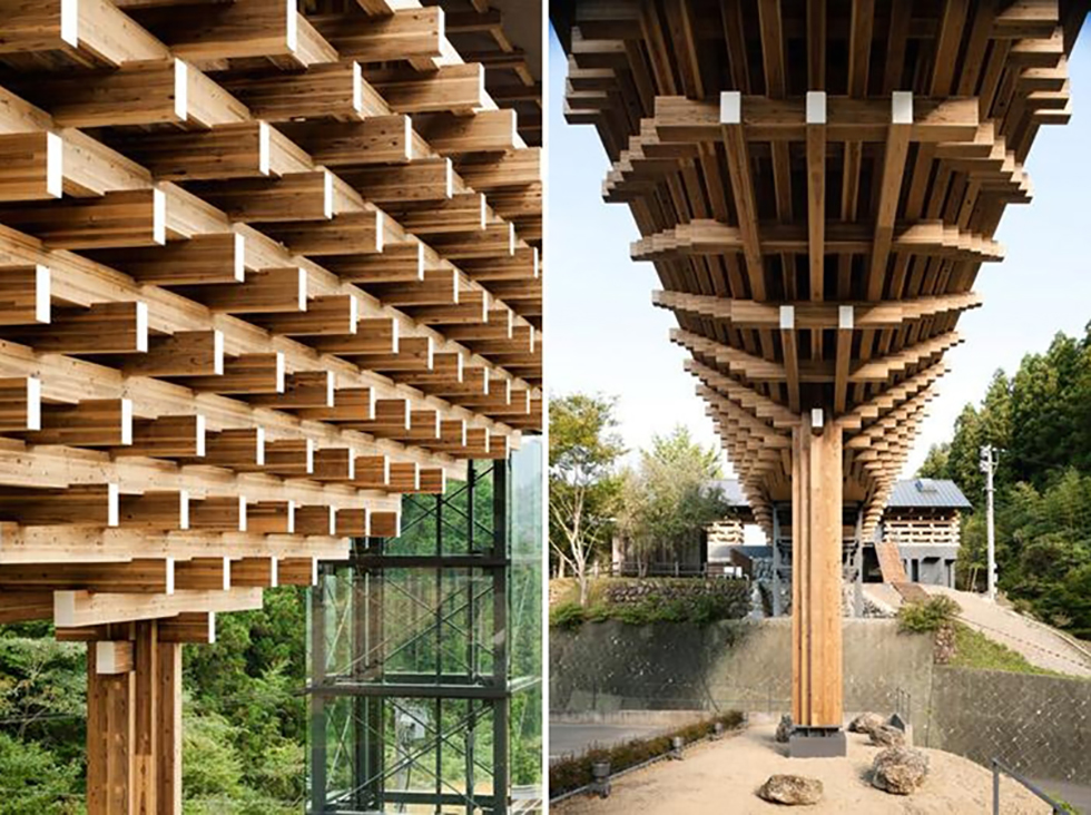 概念來自山梨縣猿橋,以刎木搭建結構同中國傳統建築的斗拱的結構,使用小斷面的建築材料即可達到大跨距的效果。