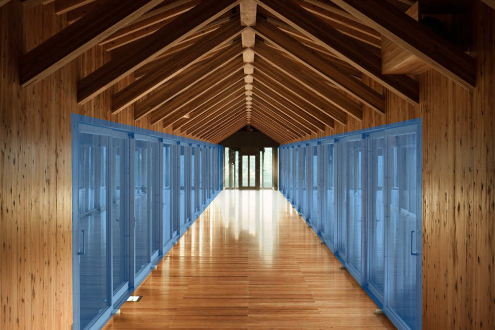 木橋部份南北兩側皆有大面開窗,光線充足,但沒有壁面能掛畫,作為展示空間。