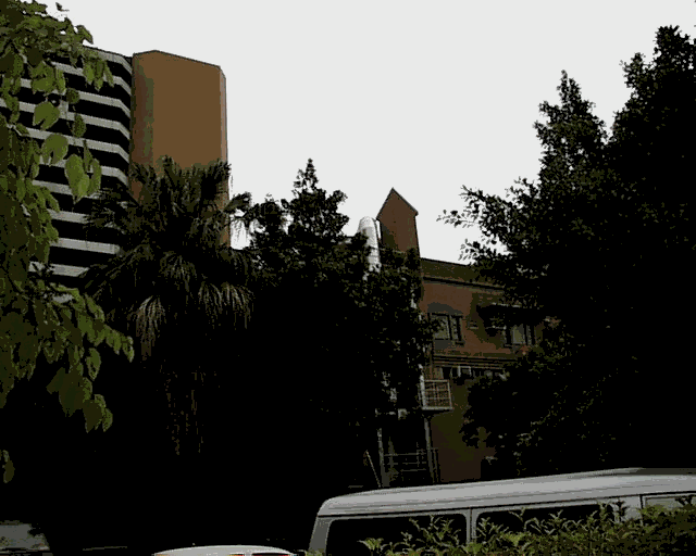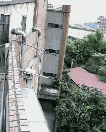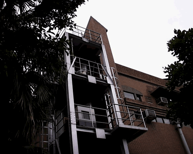 入口 中介 MASS 中介 中庭 陸、結果與問題 A:對現實環境條件的取捨 B:目前外觀上的變化 本棟建築很有趣的現象就是,現在外觀上長出許多有趣的「管子」,這雖然是由於現在機能上和原來需求設定不同所致,但也是一個值得設計者思考的問題,在現代主義「形隨機能」的口號下,如何去作進一步的思考,值得深思。 C:後現代表現特質 D:四度空間的表現 E:觀景式中庭的觀念