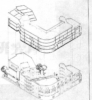 當基地中現存條件,存在著衝突時如何作取捨和調和正是一個設計必須面對挑戰的地方,在本案中由於基地形狀,之於校園中既有紋理存在的衝突,其選擇以紋理的順應為優先。