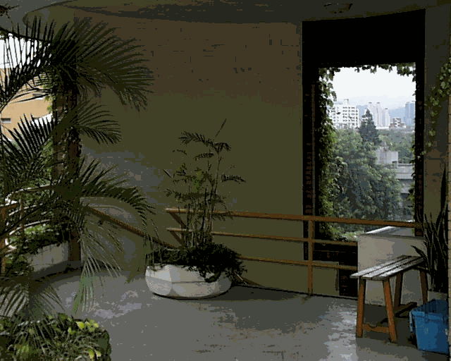 在中庭處理效果上,綠意盎然,稱得上是「草色入簾青」。對應於使用上,自然就減低了,但這正是本案子迷人之處,雖然真正接觸上的使用不多,但是心理上的感受卻非常親近,絲毫不會予人失落或生冷的感覺,另一個角度來看:管理維護上也就十分方便。