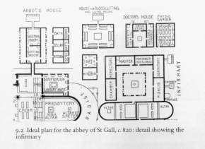 | 早期平面 | 西元820年修道院附屬醫院.見圖一