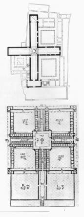 | 西元1447年最早出現的內院迴廊型平面.為其後大型迴廊型平面雛型.見圖二