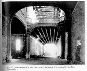 Petit設計外周圈為廊道.其剖面圖可見到圓形中央的促進通風口及宗教空間.也可經由動線的穿越增進病人的社交活動.見圖12.13