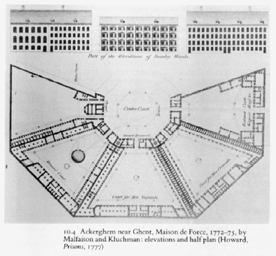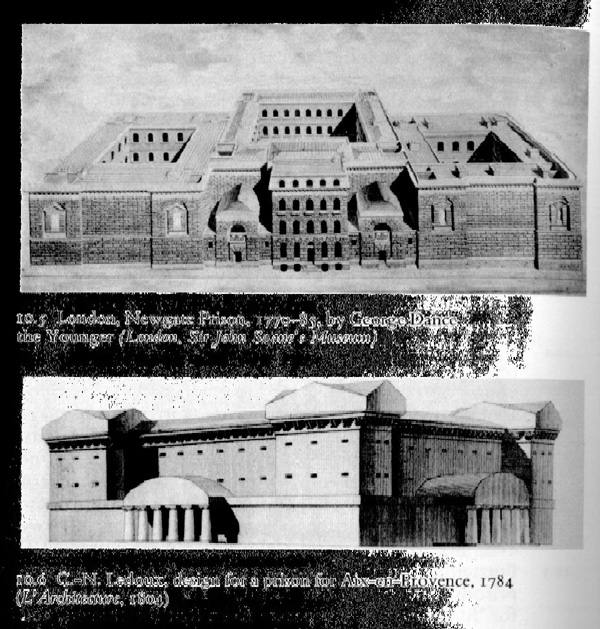 西元1795年.18/19世紀監獄外觀封閉性高.見圖9.10