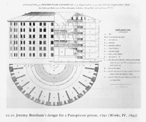 環形平面 西元1791年由設計以視覺監控作為管理辦法.見圖16