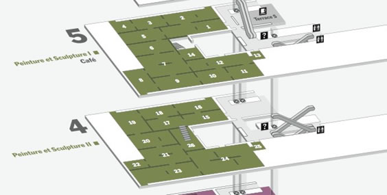 •在畫廊移動沒有規定的方式,但房間互相連接,允許許多合理的途徑探索集合。要完成一個正向的參觀,參觀者必須通過圍繞中庭的順序相連的房間。與第五層樓比較,四樓提供主路線和較長的主要序列更少的彎路。
