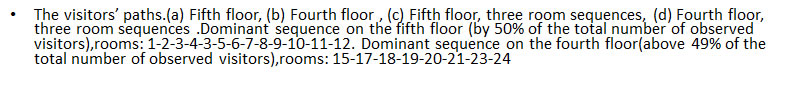 •第二,每個樓層上所花費的時間,對應到房間的數量與其變化性,以及路徑序列表明,遊客比起在四樓對五樓更多的探索。