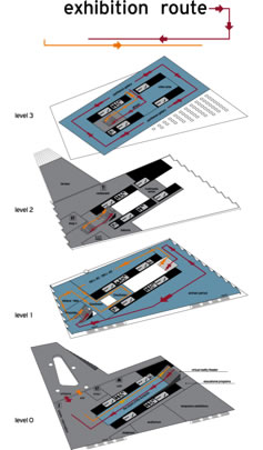 另一方面,面對大量的遊客,Tschumi討論的是如何讓人在博物館中自由活動、參觀,並非只是制式地遵循參觀動線。讓動線開放且順暢。