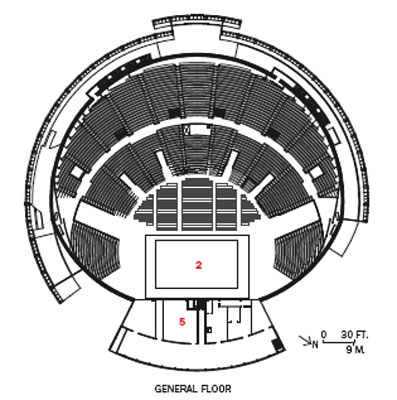 中間夾著所有動線,包含走道、坡道、樓梯等。內部音樂廳的觀眾區域也提供不同規模的表演安排不同觀眾人數的座位形式。