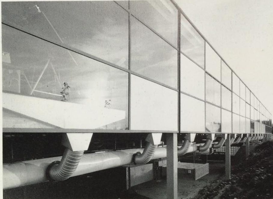 玻璃帷幕牆包含三層玻璃,作為通風室,有效助於建築物通風散熱、增加能源效率。
