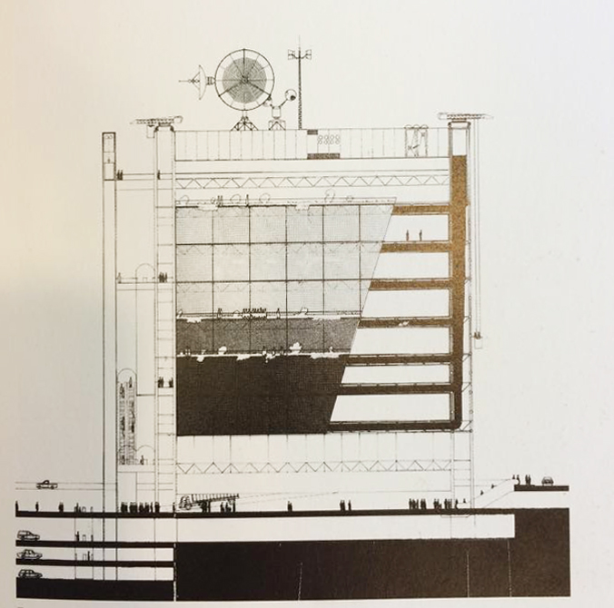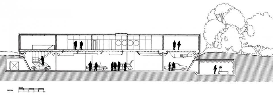 在公共區域的下方是機房和儲藏室。廣場下方則是停車靠或停放公車、貨車、汽車的地方。地上建築結構包含各項藝文活動使用的開放式樓層、戶外平台和行政管理部門所佔用的空間。