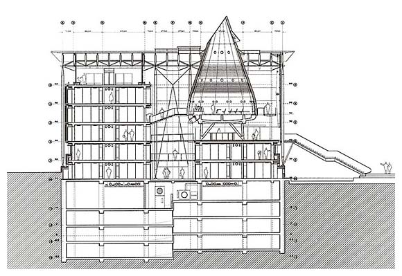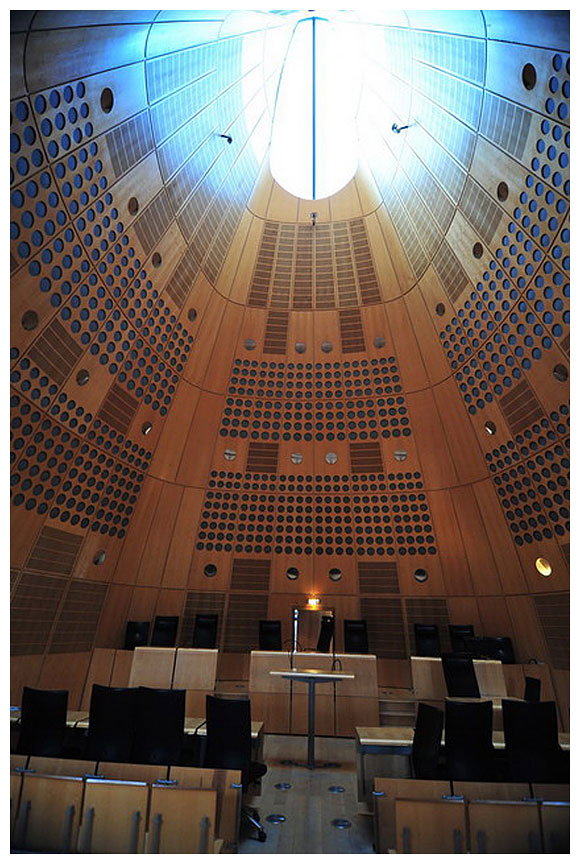 本案為一建築增建競圖案,由Richard Rogers贏得,建築設計成一系列清晰的建築物,將一法庭設計成漂浮在半空中弧形錐頂狀的獨立量體。