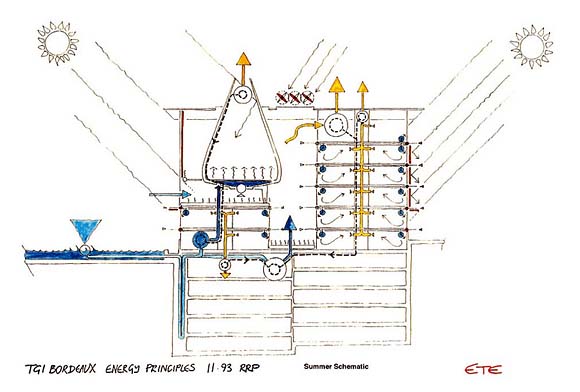 最初Rogers希望採用無柱拱棚結構,並採用與景觀結合的開放式地下室,但這想法最終因為客戶希望使用較保守的方式而未落實。