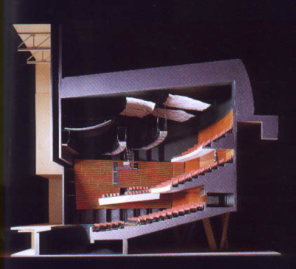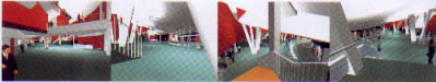 由於是競圖案所以在材料上的交待沒有很清楚,只是標示出色顏色而以,這在以往案子中算是特例.但室內很明的有意做出材質的對比和室內空間的沿伸.以木頭.玻璃.金屬和紅色的牆來做感管的接觸. |