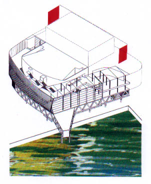 他們說會得到首獎最大的原因是解決了一機能的大問題,就是一條18.5公尺的迴轉半徑,於是設計了一運貨斜坡並和人行步道巧妙的結合在一起.