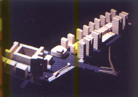 基地因為是重劃區,充滿了各大名建築師的作品,可是說是所謂"充滿量體的城市",也可以說是充滿媒體的城市,以Wilson 對基地一向的態度是採取一個錨定的角色,所以紅色就是標定這塊區域的作用.