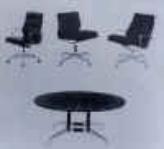 Miller團體中最有影響力的人。Eames和其他人的設計來源乃是經由無數次的修改,才使成為概念標尺和辦公家具的主要生產線和基礎思想。在50年代Eames設計了全新領域的坐椅家具,這可由他早期的發展的有機,且具有戰前現代主義者的直系血統設計中明顯得知。他改變在40年代所偏好的瘦長桿狀結構為較堅固的鑄鋁或金屬鍍鉻鋼,椅子變的較少去強調他的擬人化。在初期他運用他1954年的沙發在一全新的方向,他敘述到就像…溫柔和勇猛…一個少數解決家具設計上一個非常困難問題的答案,當時主要投資在這被稱為“1958的座椅鋁金屬集團”的新樣式上。 |