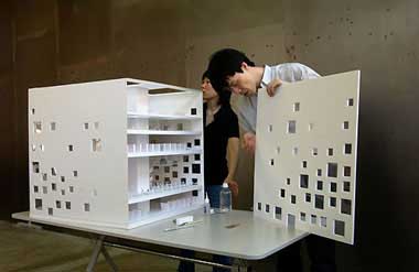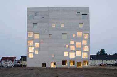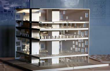 設計出一個指標性的抽象量體建築,建築物由巨大的開放樓層堆積而成,混凝土外牆大量開窗,引進自然採光與風景,