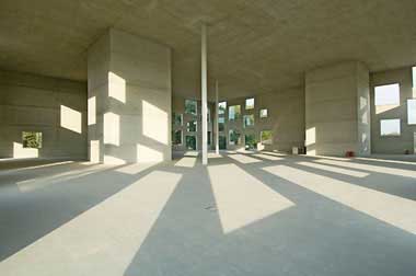 即使適用混凝土也能做出明亮而透明的建築,利用從礦坑抽上來之地下水,在混凝土外牆埋設2.5公分的管子來作隔熱。